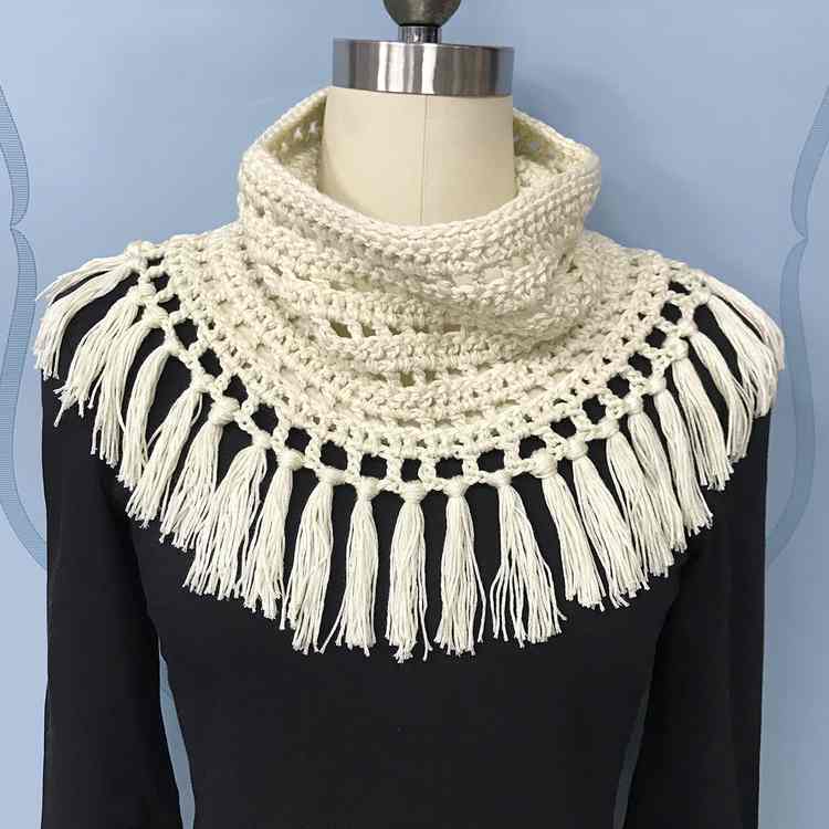 纯手工钩编流苏围脖