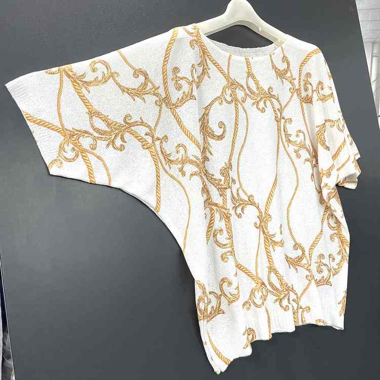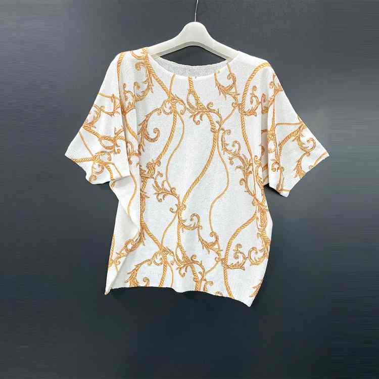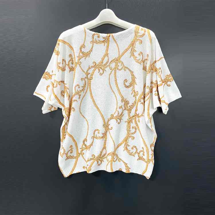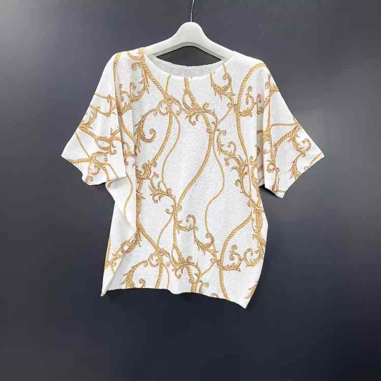 跨境爆款春夏休闲圆领蝙蝠袖宽松短袖针织衫印花通勤女装