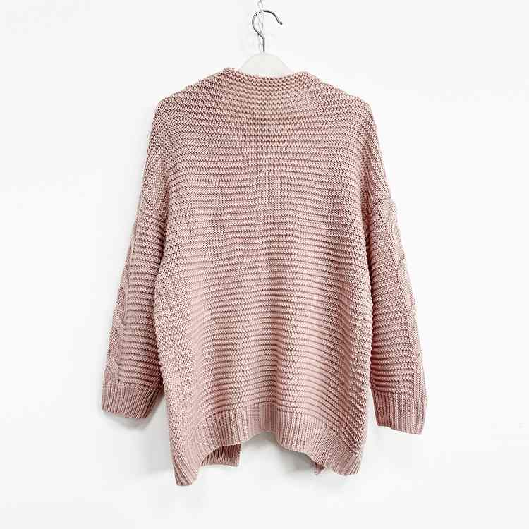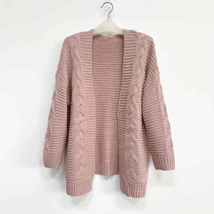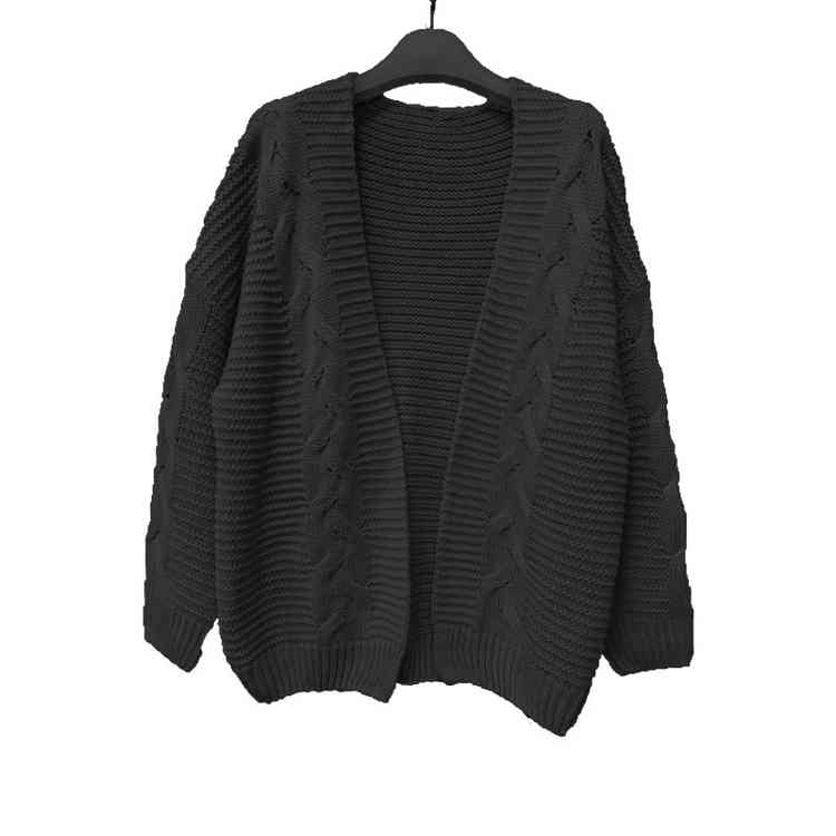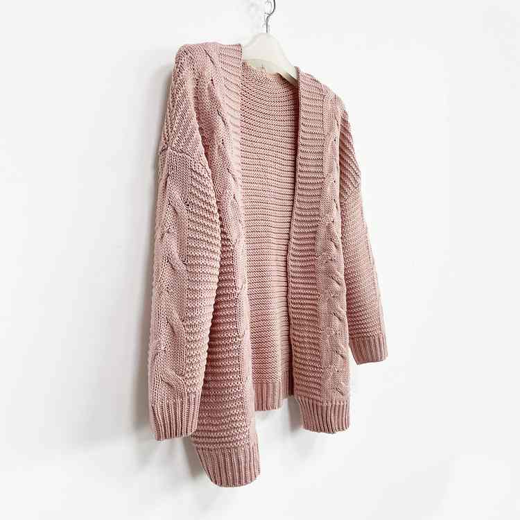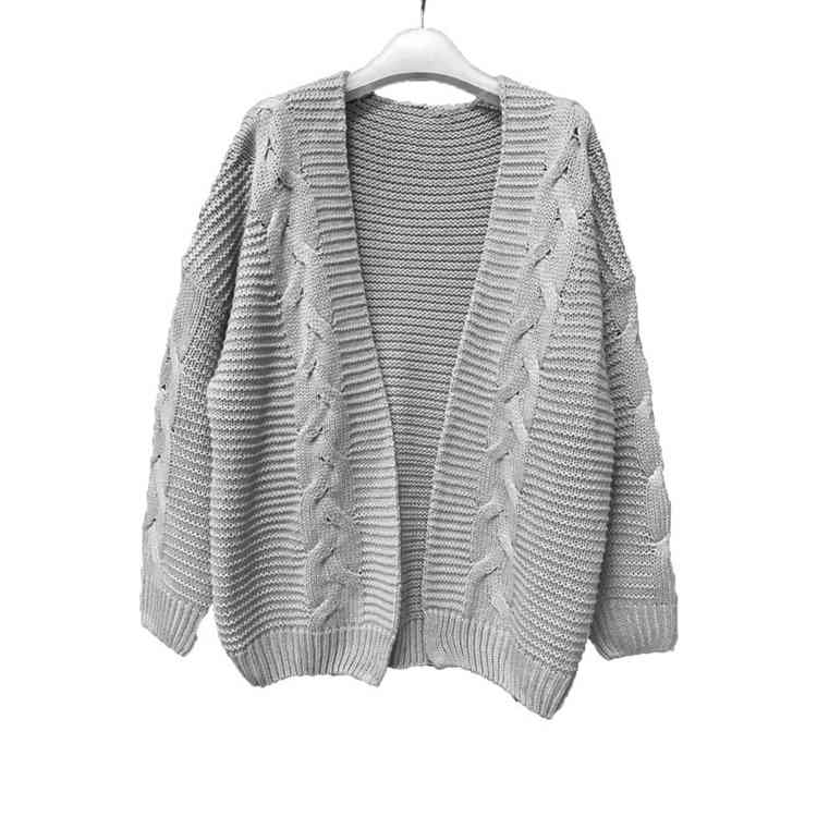 欧美跨境女士秋冬休闲纯色长袖针织开衫 麻花毛衣