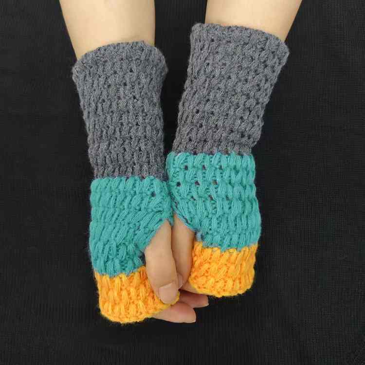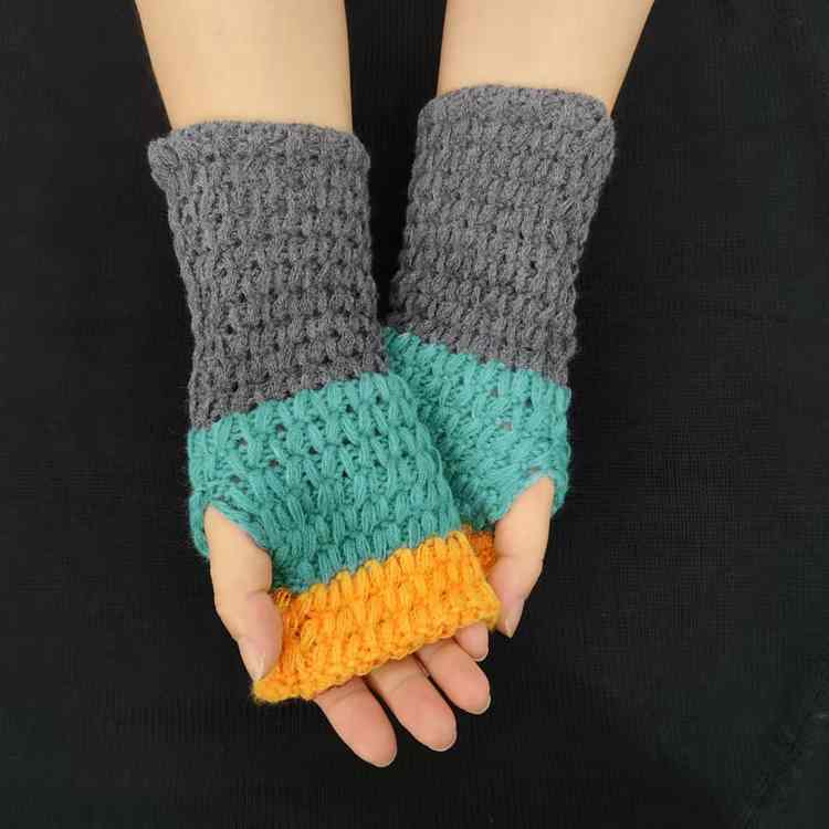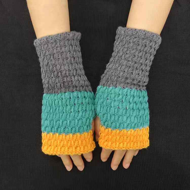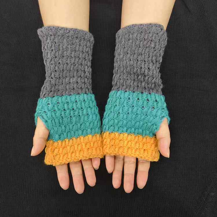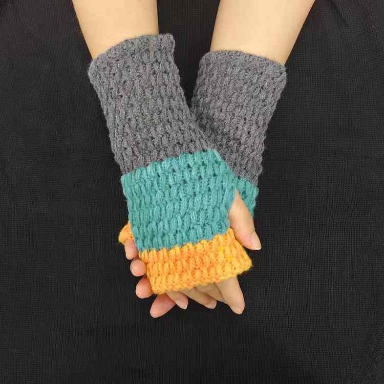 2025热销新款三色漏指拼接手臂套百搭针织工艺韩系时尚毛手套