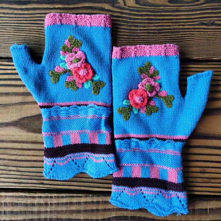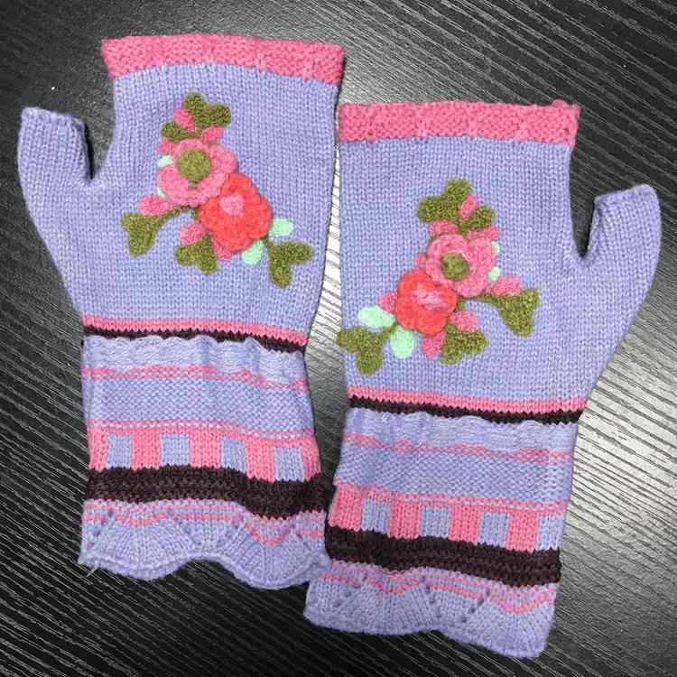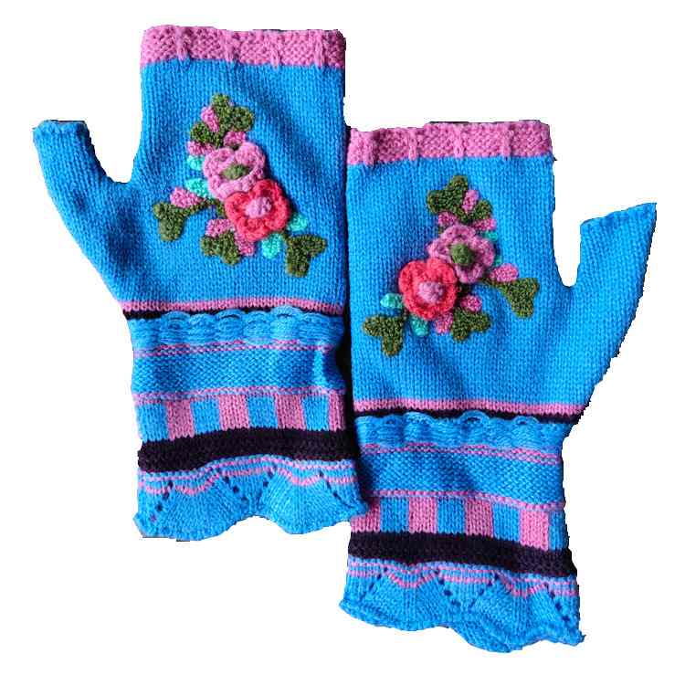 手钩绣花提花手套