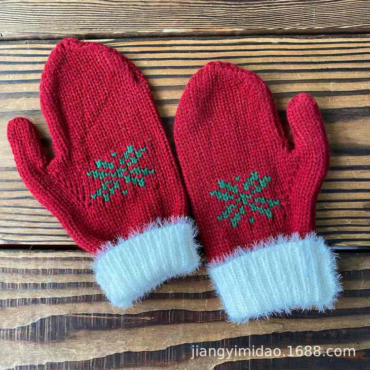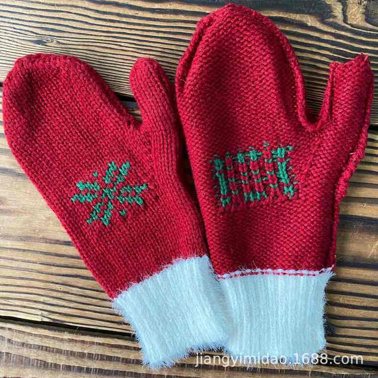 匠一服饰设计圣诞装饰品手套 圣诞老人手套 圣诞节保暖提花针