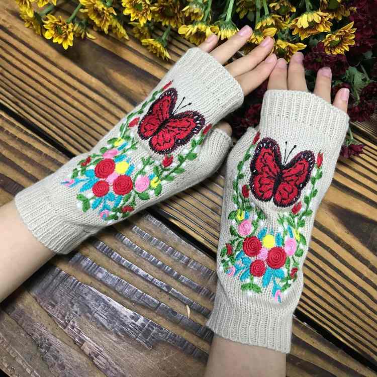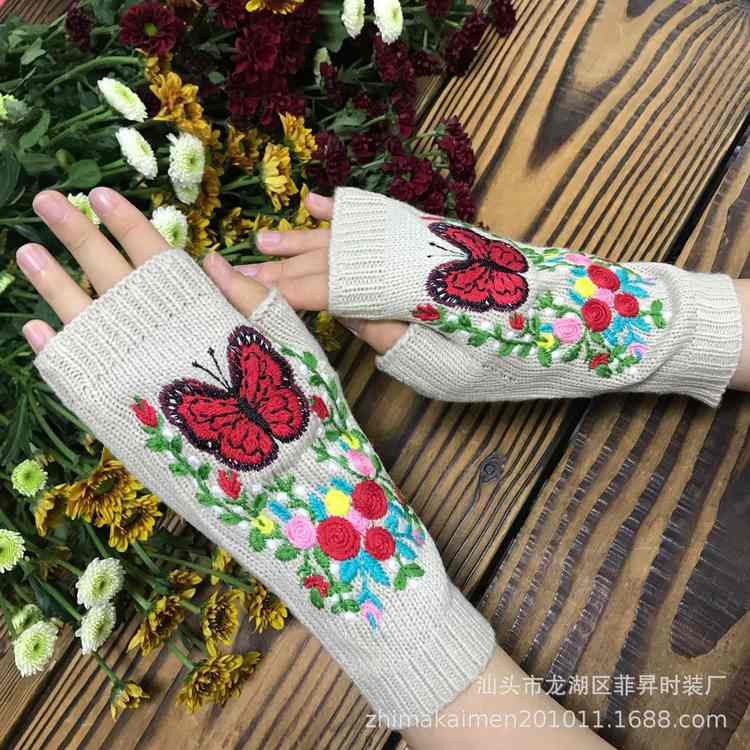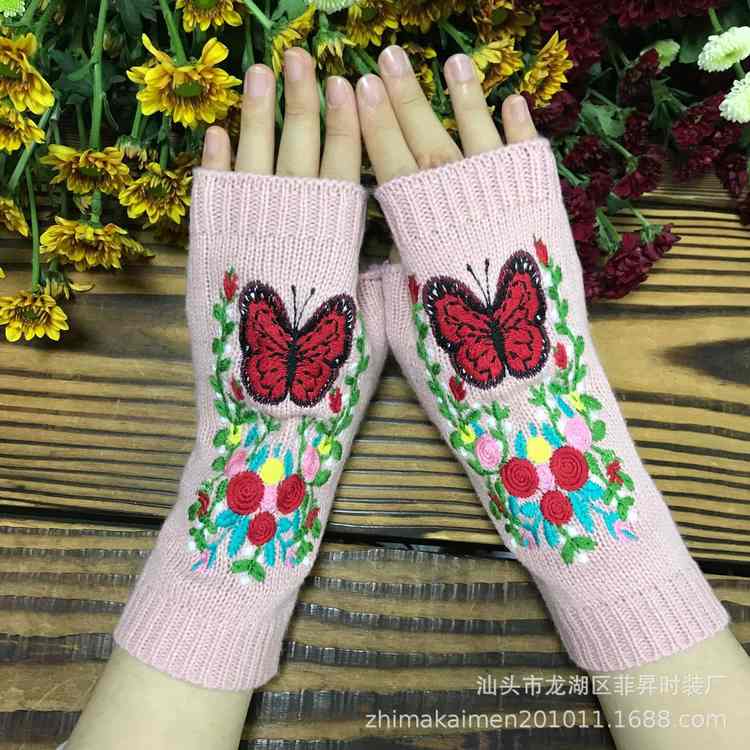 秋冬绣花手钩女式毛针织手套来图来样加工定做