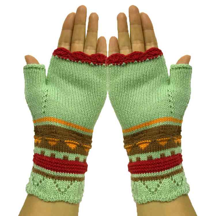 Custom made cross-border autumn and winter women's hand hook floret warm knitted gloves processing custom jacquard wool gloves