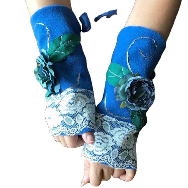 Wool factory warm autumn and winter women's flower Fingerless Gloves Winter knitted gloves processing custom-made