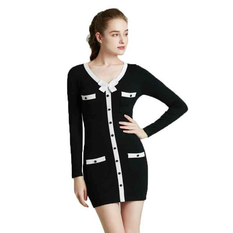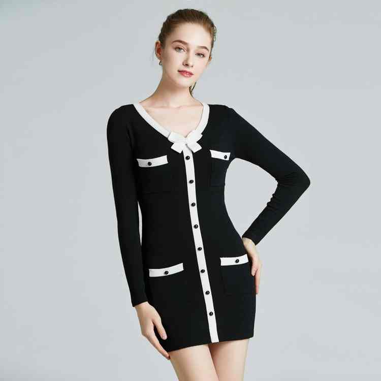 2023 new selling women's leisure fashion slim black and white stitching color collision dress commuter jumpsuit short skirt