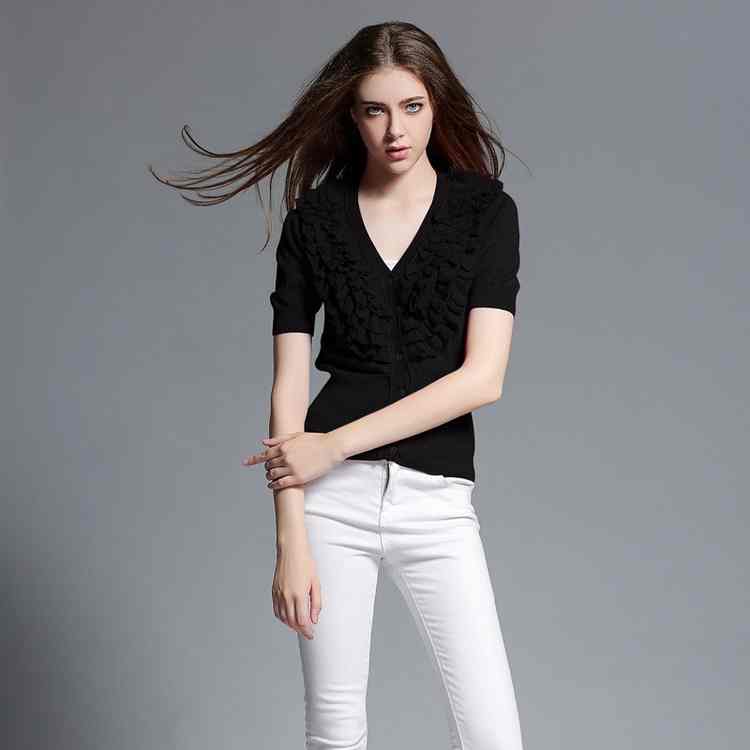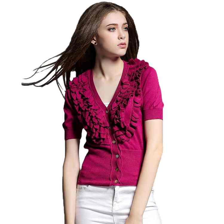2022 hot spring and summer women's clothing Lolita multi-layer fungus edge V-neck short sleeve solid color knitted cardigan