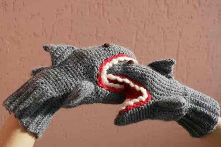 2023 Crossover Hot Autumn and Winter INS Style Christmas 3D Three-dimensional Shark Pattern Warm Leisure Gloves