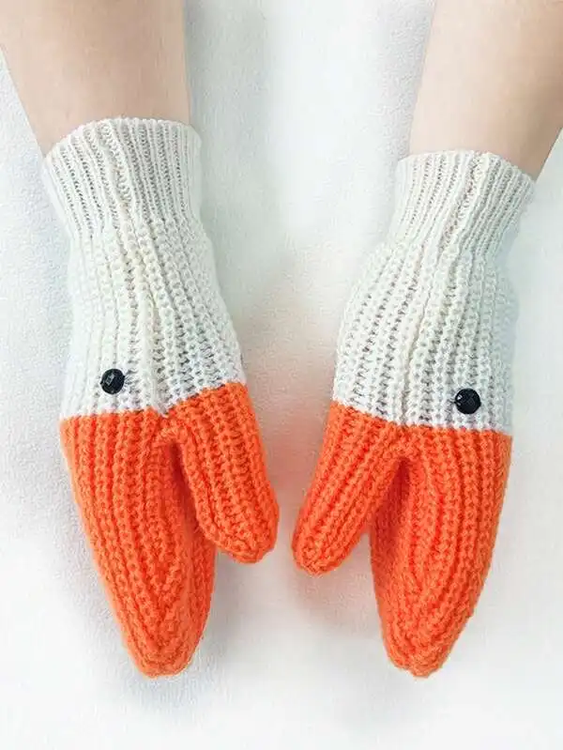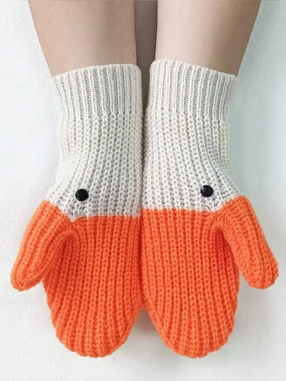 High quality custom women's mittens knit fashion luxury warm white color matching gloves