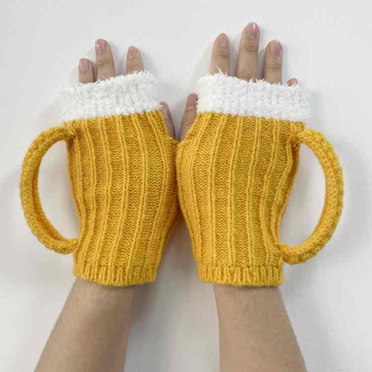 Unique design finger winter gloves for women mittens for girl fashion premium yellow white warm gloves