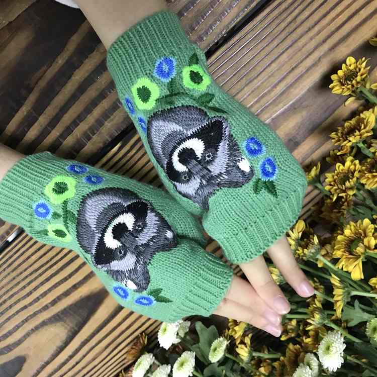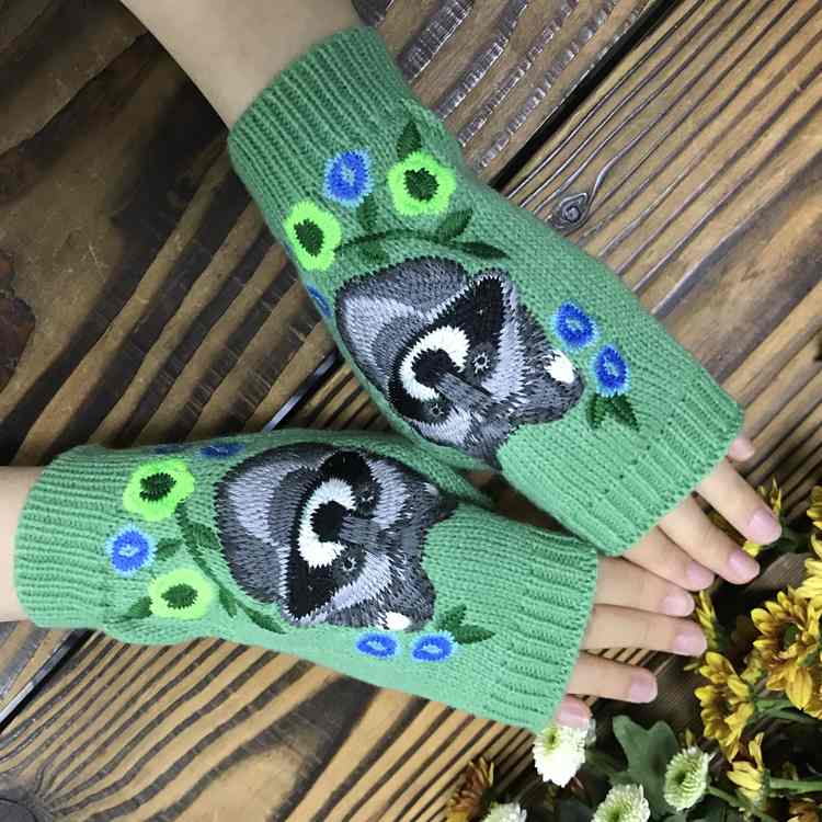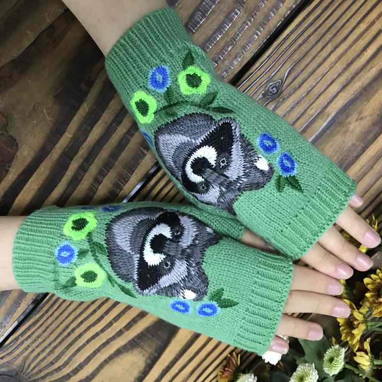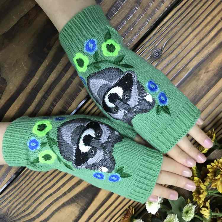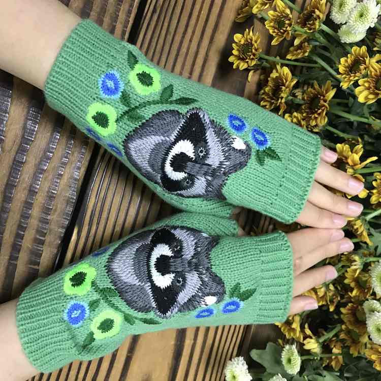 new autumn and winter knitted Koala embroidery gloves lady's style lengthen warm adult woolen gloves