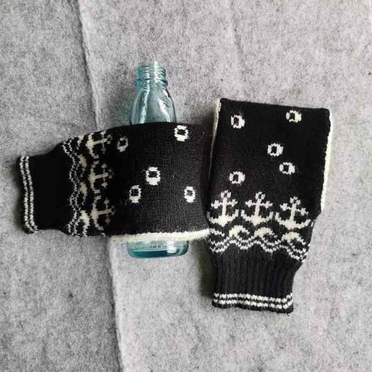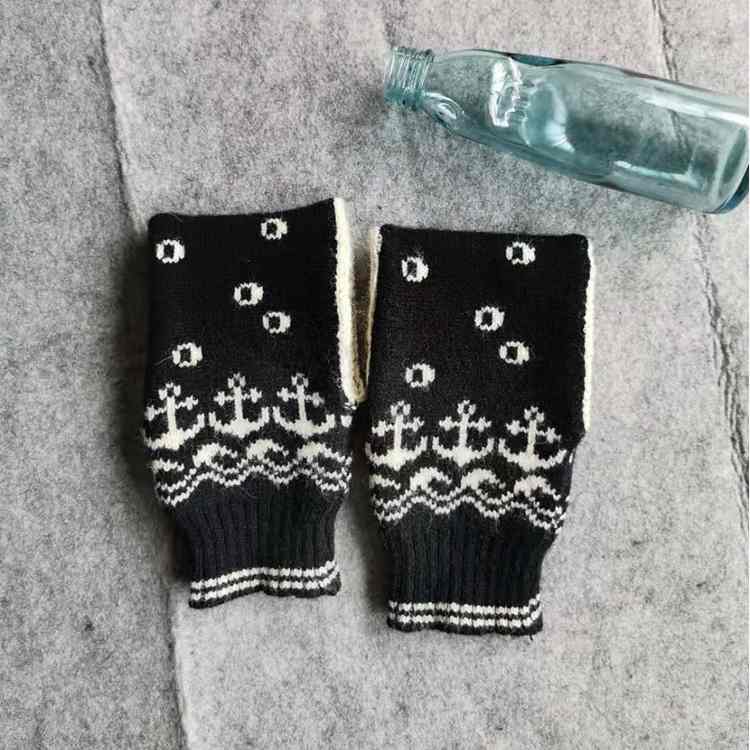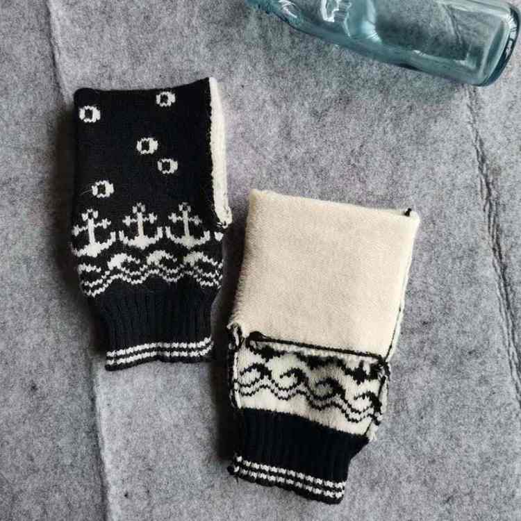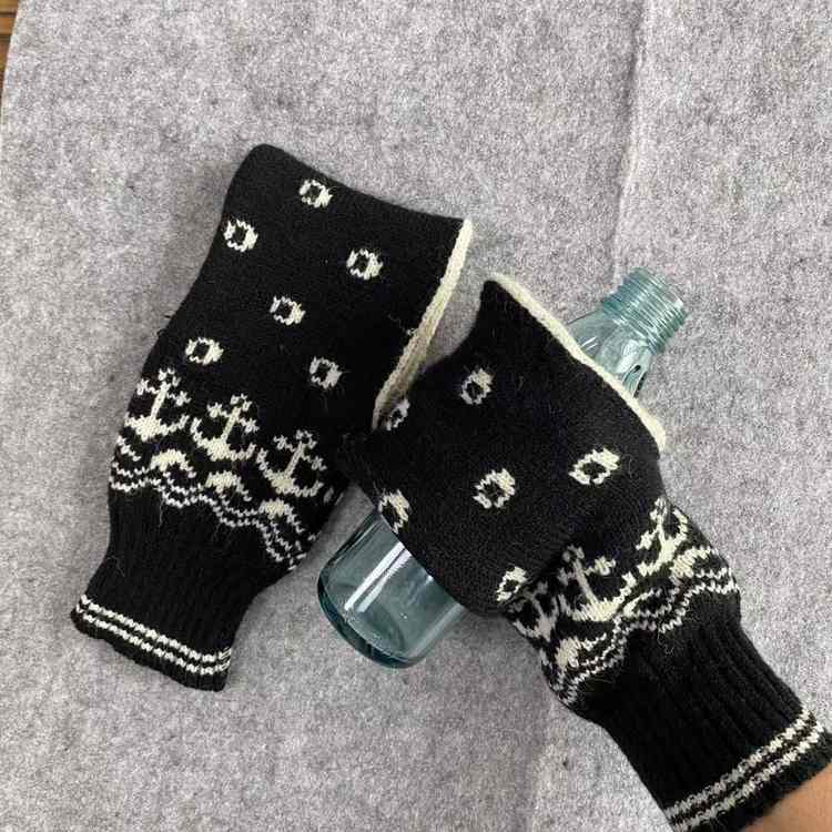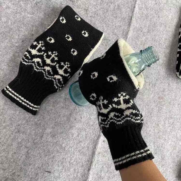 Burning hot autumn winter knitting embroider lengthens black snowflake white dot to be able to hold the lady adult glove of cup